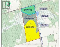 Opportunity 98 acres Vacant Land with mixed uses, Current use is Aggregate Pit, Extractive Industrial Zone (M4) license number 4875 Southern Region, Aurora Midhurst Owen Sound District (to be transferred at the Buyers Expense)There is 40.3 % Wetlands Protection Zone (W) 1.8% is Environmental Protection Zone (EP) back of property is + - 48.5%, Agricultural Zone (A1) is + - 45% and Pit area is zoned Extractive M4 zoning + - 9.5%There is still aggregate in the pit, approx. 88,500 tonnes plus what is out on the ground. Great opportunity for a contractor, Pit operator. Pretty Pond on the property from the previous excavating, Clear Blue water. Good Agricultural land at the back of the property, access is through the Road 21 off Highway 89, Pit access if rom Southgate Rd 04 (id:12481)
