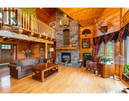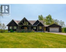Introducing an exceptional country estate that captures the essence of luxury living amidst stunning rolling hills and breathtaking topography. This one-of-a-kind property spans 50 acres, featuring 30 workable acres, perfect for equestrian pursuits. The estate includes a remarkable horse barn equipped with 10 stalls, a wash stall, and 4 paddocks, complemented by multiple picturesque pasture fields. An impressive indoor arena, sized at 64 x 72, awaits both horses & riders. The centerpiece of this estate is the striking log home, designed to resemble a stylish chalet retreat. With 4 spacious bedrooms & 2 luxurious bathrooms, the interior showcases exquisite craftsmanship with wooden beams and gleaming wood finishes throughout. The main floor living area truly embodies the heart of the home, featuring a showstopper combination of expansive windows and a stunning stone fireplace with waterfall feature that creates a warm and inviting ambiance. The kitchen has abundant cabinetry, counter space & beautiful stone backsplash. The expansive back deck wraps around the entire rear of the house, providing a tranquil setting for outdoor dining and relaxation. The oversized master bedroom has a remarkable custom walk-in closet complete with cabinetry & shelving. The ensuite bathroom is a spa like retreat with elegant travertine tile, oversized shower & Jacuzzi tub.The second story offers an ideal sitting room that overlooks the main living area. Custom windows provide views not only of the living space below but also of the serene property, creating a seamless connection with nature, offering panoramic views of the picturesque surroundings. Cozy up by the floor-to-ceiling stone fireplaces in both the main living area & basement, where the walkout design provides easy access to the outdoors & entertaining. The spacious finished basement offers a large recreation room with in-floor heating, complete with a pool table along with a rough in wet bar, bathroom & 3 additional bedrooms. (id:12481)