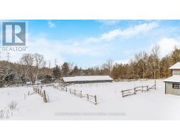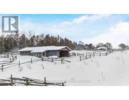Welcome to 262700 Varney Road, a special rural property set on approximately 45 acres in the heart of West Grey. Offering a mix of workable land, open pasture & wooded areas, this is a place where space, nature & opportunity come together. The bungalow welcomes you with a bright front entrance featuring new vinyl flooring & five windows overlooking the front yard. The living room offers new vinyl flooring, a semi flush mount ceiling fan, & side facing windows that bring in plenty of natural light. The dining room features new vinyl flooring, a semi flush mount fan & light, and a charming arched window overlooking the front of the home. The kitchen is both functional & inviting with new vinyl flooring, pendant lighting, shaker style cabinets with glass inserts, soft close slides & hinges, & a window overlooking the backyard. Appliances include a white Whirlpool stove, Samsung range hood & microwave, & white Amana fridge & dishwasher. Three main floor bedrooms provide comfortable living space. The primary bedroom features two single closets & one double closet, with windows overlooking the front & side yards. The second bedroom includes a double closet & side facing window, while the third bedroom also offers a side facing window. The 3 piece main floor bathroom is finished with ceramic tile flooring, pot lights, a wall sconces, a freestanding single sink vanity, & a standing shower with glass surround & brass hardware. Outside, the property shines. A gravel driveway leads to a large barn with workshop style space, along with multiple farm outbuildings. The backyard offers a poured concrete patio, electric fencing & an exterior round pen. Camp Creek flows through the land & is known to support trout, adding to the peaceful natural setting. Apple trees are scattered throughout & the Harrison loam soil is well suited for agricultural use. The property has historically supported horses, grass fed beef, sheep, donkey & cash cropping. (id:12481)
