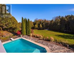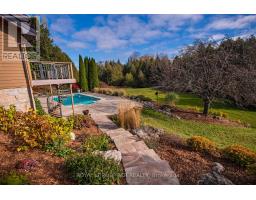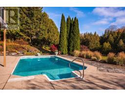 Welcome to Nature's Door, 33 gorgeous acres in the Town of Mono with a river running through it. An exceptional property offering endless enjoyment with the backyard vista overlooking the Nottawasaga River. This custom-built home was overseen by a local entrepreneur who purchased the property and hired the finest local trades to build this impressive home. The great room with large windows, vaulted ceiling and soaring floor to ceiling 19ft natural stone fireplace is spectacular. Completely renovated kitchen with quartz countertops, Café appliances and wide plank flooring. The pantry with bar fridge is just as impressive with its vaulted ceilings and natural light flowing through the space. Open riser staircase leads you to the loft library then onto the principal bedroom with five-piece ensuite and a private balcony overlooking the property. Lower level is fully finished with family room, stone fireplace, bar, powder room, office, large bedroom with ensuite. Each of the three rooms have garden doors walking out to the pool patio with the pool surrounded by gardens and breathtaking natural views. The home is comfortable and spacious to invite friends and family up for country weekends. Looking for more office space, there is a private office above the garage with its own staircase and views over the back of the property. Outbuilding consisting of three stalls, storage and a garage is ideal for pursuing hobbies or anyone wanting to keep horses on the property. The property features two paddocks, open fields, forest with cedar and massive mature maples with a river running through the middle of the property with a heavy-duty bridge to access the back acreage. Property is located just north of Caledon in Hockley Valley and is 1 hour from Toronto, 15 minutes to Orangeville and provides easy access to area amenities such as Mono Cliffs, Hockley Valley Resort, Adamo Winery, The Bruce Trail, Mansfield Ski Club and many local restaurants. (id:12481)