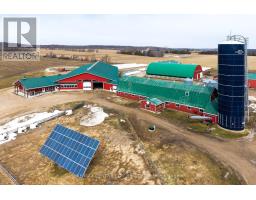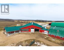 Welcome to this incredible robot dairy, ideally situated on a 100-acre corner farm just southwest of Chatsworth, ON. This property features nearly 78 kg of saleable quota, 75 workable acres with additional land available, and a beautiful 5-bedroom, 3-bathroom two-storey home built in 2008. The modern dairy barn, built in 2016, is thoughtfully designed with 140 free stalls, an isolation pen, a 5-stall separation area, and a large maternity pen. Milking cows are bedded with recycled fibre while the remaining stalls feature rubber mats. Milking is handled efficiently by 2 Lely A4 robots paired with an 8,000 L milk tank. The barn is equipped with an office, bathroom, mechanical room, and a dedicated vet room complete with a trim chute for herd care. Seamlessly connected to the new barn via a wide hallway, the renovated older barn now serves as a space for young calves and also houses an electrical room with a 65-kilowatt backup generator. Just behind the new barn sits a detached 60' x 100' naturally ventilated coverall building, offering four large pens for bred heifers. Feeding is handled through a TMR mixer supported by three silos, a large hay storage building, wrapped bales, and silage bags. Additional buildings include a detached two-car garage, a heated workshop, two large equipment sheds, a brand new well, and a 10 kW solar panel providing additional income. This farm is a truly wonderful opportunity in one of Ontario's most peaceful and picturesque corners. (id:12481)