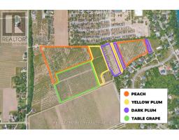 This large parcel of land is tucked up against the beautiful town of Queenston in Niagara on the Lake. This 43.8 acre parcel of land is an established and operating tender fruit farm with a large irrigation pond, diesel powered frost fan, and as some equipment included to add to an existing operation or help an aspiring fruit farmer get started. This productive farm has approx. 12 acres of table grape vines, over 16.75 acres of Peach trees, nearly 5 acres of yellow plums, and 4.33 acres of European dark plums all with systematic tile drainage. The tree/vine varieties have allowed for a balance of workload throughout the season and they perform with excellence here as the niche micro-climate has proven results for the existing farmer. Currently this property is Zoned RA, (buyers due diligence for any building)Fronting this property is an additional 13 acres also available hosting the same tree varieties with the road access and trailer with septic and cistern. Call for more information. (id:12481)